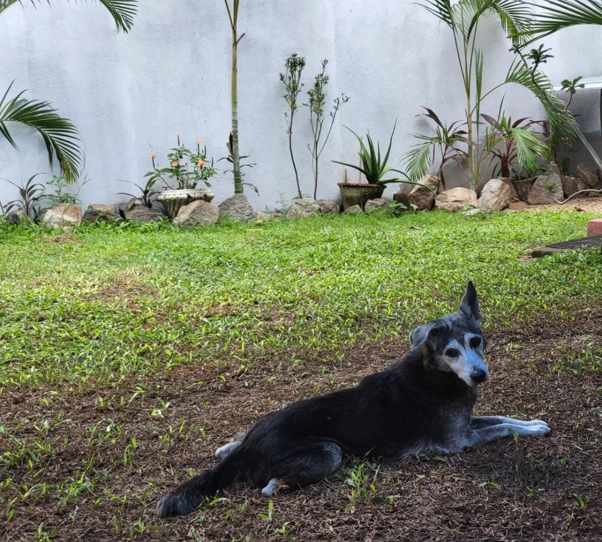 Blacky is 16 years old and I got him as a puppy from a pound where he was been attacked by bigger dogs. He has been a really good pet and treated like royalty by everyone in my family. Blacky was also featured on CNN to raise awareness about dogs in Srilankan pounds and to raise awareness about adpating abandoned pound or street dogs. Blacky loves to go for walks and his favorite food is chicken. Recently, he had an operation and he's recovering well. He has taken care of us by barking at everything that moves and is a good guard dog.